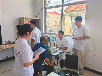 “光明先锋”志愿服务队赴济宁市泗水县为社区老人进行眼科疾病筛查。学校供图