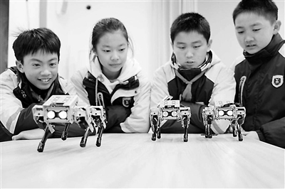无锡市春城实验小学的学生在观察机械狗的步态反馈。徐润希 摄