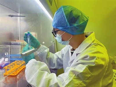 湖南大学博士生梁邦朝在研究生物3D打印材料。 资料图片