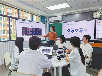 海南医科大学医学信息工程专业师生在智慧教室研讨中。学校供图