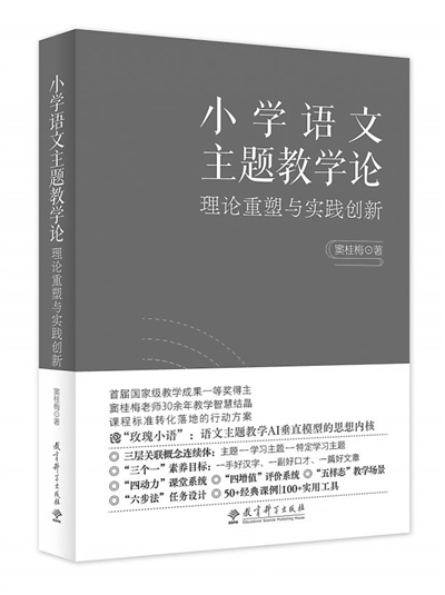 教师的成长历程,是个人经验升华为公共理论的思想发展史。窦桂梅校长以四十年的教育实践,展现了教师从课堂感悟走向理论建构的专业发展过程。《小学语文主题教学论:理论重塑与实践创新》一书(以下简称《主题教学论》)近日第六次印刷,这本著作的不断修订、重印,记载着窦桂梅个人实践话语的三次跃升,完整呈现了一位教师从实践创生到理论成形的思想进阶之路。