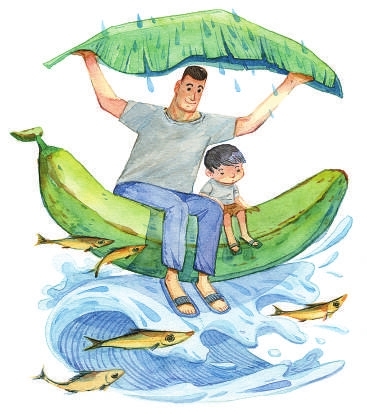 我最喜欢书中“钓鱼的小骗局”这个故事:爸爸带着儿子去河边钓鱼,可坐了很久,都没能钓上一条鱼。于是,儿子偷偷写了一张纸条,塞进信封里,上面写着:“我是小鱼,今天我们不来了。”然后悄悄把信封扔进水里。爸爸看到水里漂来的信封,拆开一看,被逗得哈哈大笑,开开心心地牵着儿子回了家。