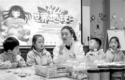4月21日,在河南省商丘市睢县古襄路幼儿园“童心护地球 共绘绿色梦”主题活动现场,小朋友学习环保科普知识,参与“变废为宝”手工制作。4月22日是第57个世界地球日。连日来,各地举办形式多样的主题活动,倡导人们珍爱自然资源,守护美丽中国。