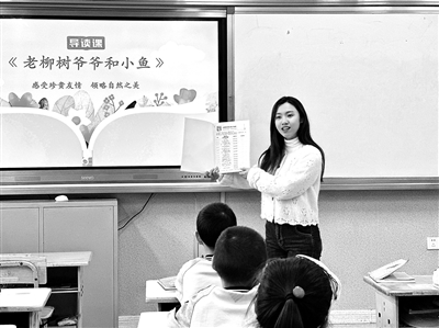 ①山东省威海火炬高技术产业开发区第一小学的教师在指导学生阅读。