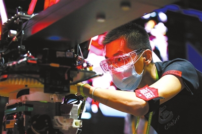 ①常州大学教师在指导学生完成机器人装配。 学校供图