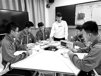 济南济阳区职业中专师生在智慧教室开展桥式整流电路实验教学。 学校供图