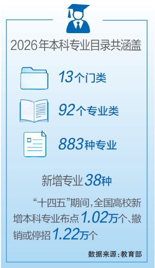 本报北京4月28日讯(记者 欧媚)近日,教育部发布《普通高等学校本科专业目录(2026年)》(简称“2026年本科专业目录”),以科技创新、产业发展和国家战略需求为牵引,持续提升高等教育对高质量发展的支撑力和贡献力。