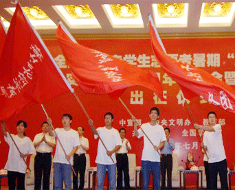 1997年 传播文明圣火,推进扶贫开发 1998年 在服务农村两个文明建设、服务农民生产生活 的实践中深入学习贯彻党的十五大精神,深入学习邓小 平理论。 1999年 弘扬"五四"爱国精神,勇担强国富民重任 2000年 向新世界迈进,在实践中成才 2001年 播科学圣火,做文明使者 2002年 同人民紧密结合,为祖国奉献青春 2003年 实践“三个代表”,弘扬民族精神 2004年 传承“五四”报国志,落实科学发展观 2005年 服务和谐社会建设,提高思想政治素质 2006年 践行荣辱观,服务新农村 2007年 贯彻科学发展观,服务农村促和谐 |