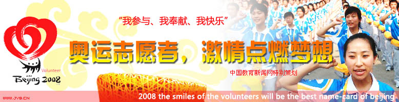 10万赛会志愿者、40万城市志愿者和100万社会志愿者以及20万拉拉队志愿者已经展开双臂笑迎来自五洲四海的宾朋。作为奥运服务的生力军,大学生志愿者的出色表现,向世界亮出最美丽……[点击详细]
