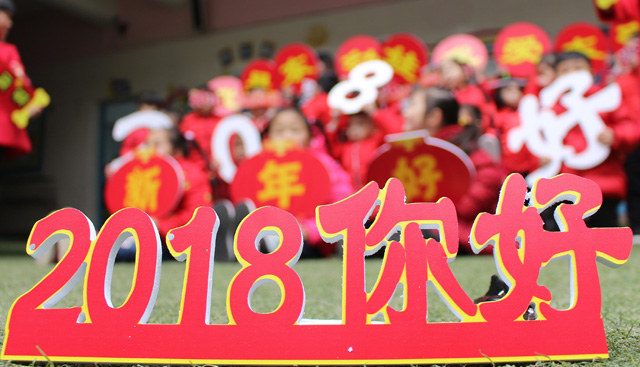 2018年元旦临近,四川省内江市东兴区机关幼儿园的孩子们喜气洋洋迎接新年到来。孩子们在老师的带领下,以了解新年习俗、造型走秀等方式,体验新年来临的喜庆气氛。唐明润 摄